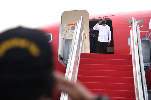 Presiden bersama rombongan lepas landas dari Pangkalan TNI AU Halim Perdanakusuma, Jakarta, sekitar pukul 08.00 WIB dengan menggunakan Pesawat Kepresidenan Indonesia-1.